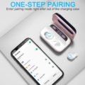 Answer: 140-Hour Playing Time and 2600mAh Portable Charging Case: The wireless headphones bluetooth can play for 6hrs on a single charge, the charging case can recharge the bluetooth earphones about 23 times, provide extra 140hrs playback. With USB-C tech, it only takes 1.5hr every full charge for the case.