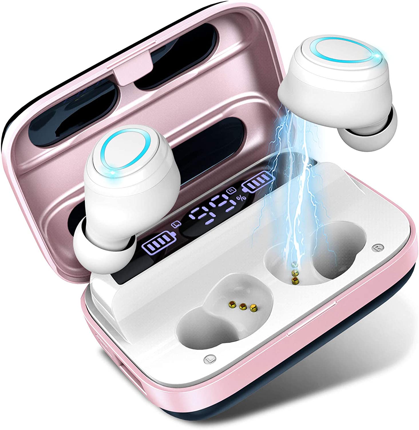 Wireless Earbuds, Bluetooth 5.1 Earbuds 140H Playtime, Bluetooth Headphones HiFi Stereo Noise Cancelling Wireless Earphones in Ear with Mic, USB-C Charging, IP7 Waterproof Headset for Sports Rose Gold